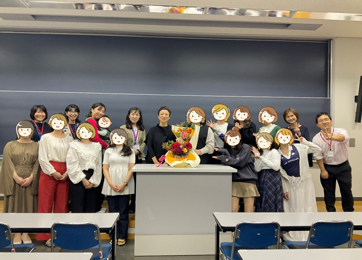 第3部の懇親会にはOG・在学生・教職員とそのお子様たちが集まってくださいました。初対面であっても、そこはさすがの同窓生。共有できる話題は尽きず大いに盛り上がりました。楽しい時間はあっという間に過ぎ、堀口康太准教授のご挨拶と集合写真撮影で閉会となりました。