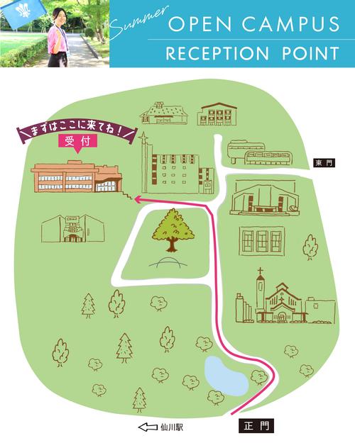 ▲当日は正門から矢印に従って受付までお進みください