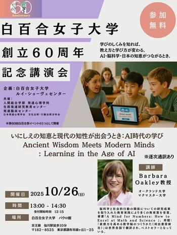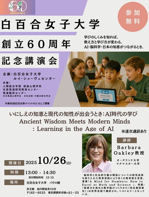 本学の学園祭である白百合祭当日(2025年10月26日)に、大学創立60周年を記念した講演会を開催いたしました。