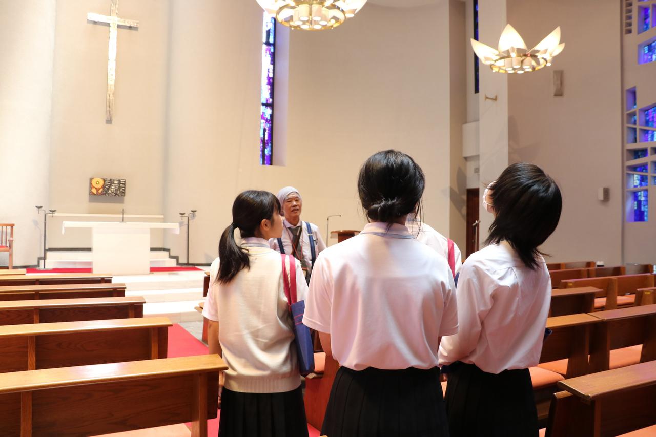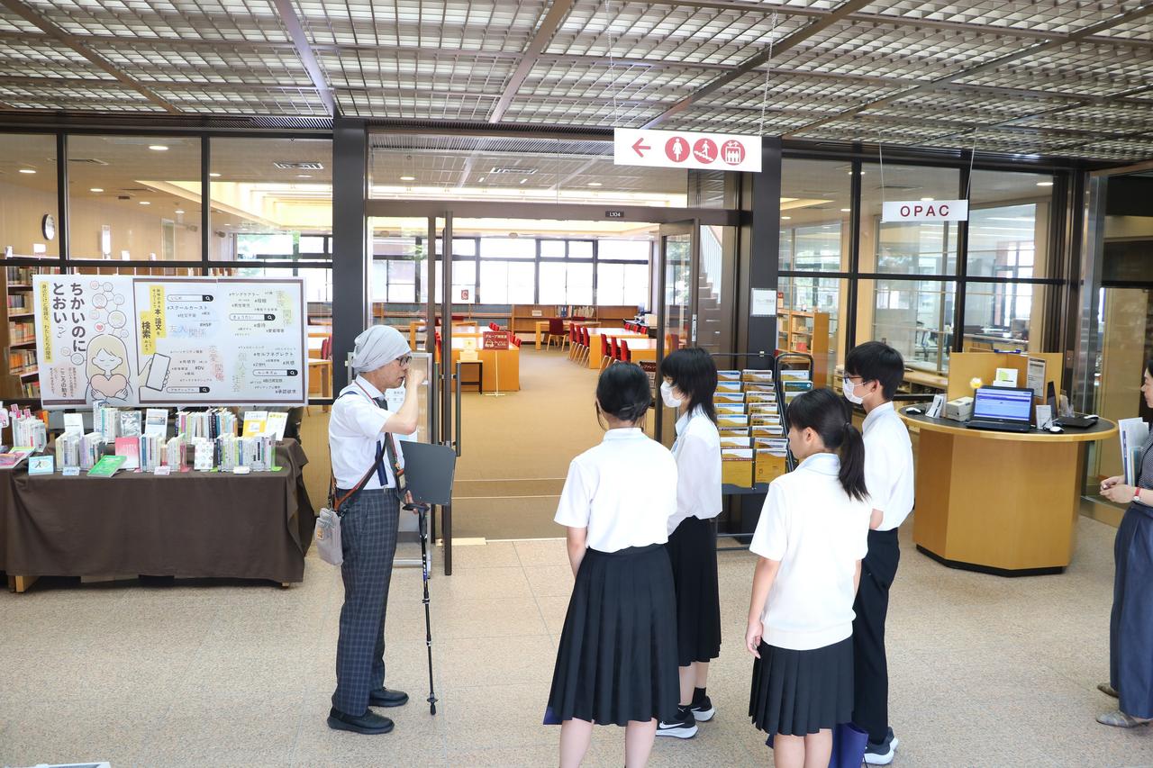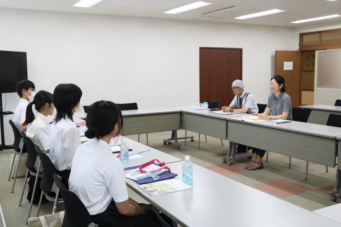 体験場所となる各施設や業務内容について説明を受けた後、キャンパスを見学しながら教職員や学生と挨拶を交わしました。少しずつ緊張もとけていきます。