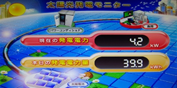 3号館ロビーには発電量がリアルタイムにわかるモニターが設置されています。