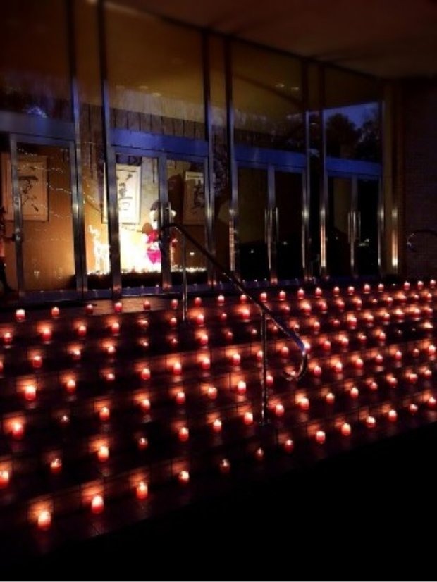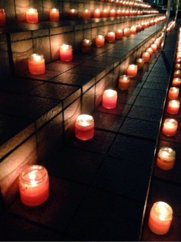 講堂前に飾られたエコキャンドル